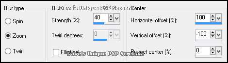 Selections> Select All ... Modify> Contract by 15 Selections> Promote Selection to Layer Adjust> Blur> Radial Blur ... with the following settings
