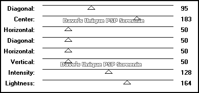 Effects> Mura's Meister> Copies ... *Line ... default settings Change this layers Blend Mode to Luminance(L) or Luminance and the Opacity to 50% Layers> New Raster Layer ... Flood Fill with the same color you used for the Square layer Selections> Select All ... Selections> Modify> Contract by 3 ... Hit DELETE on your keyboard Selections> Select None