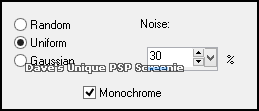 Layers> New Raster Layer ... Flood Fill with your Background color Selections> Select All ... Selections> Modify> Contract by 1 ... Hit DELETE on your keyboard Selections> Select None Adjust> Add/Remove Noise> Add Noise ... with the same settings as earlier