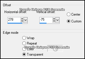 Unhide and Activate the Top layer ... Image> Free Rotate ... same settings as earlier Effects> Image Effects> Offset ... with the following settings