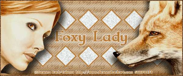 First time trying one of my Tutorials? Then please check my Terms of Use before you continue You will need: Fonts of your choice - I used Crostini for the background Text and Immortal for the Name Tubes of your choice - I will be using the artwork of Deanna Bach-Talsma This artist is not currently selling her art in Tube Format (I used a two part Tube one part being the Lady the other the Fox)