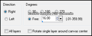 Selections> Select None ... Image> Free Rotate ... with the following settings