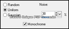 Activate the Top layer ... Layers> New Raster Layer Flood Fill with color of your choice Selections> Select All ... Selections> Modify> Contract by 1 Hit DELETE on your keyboard ... Selections> Select None Adjust> Add/Remove Noise> Add Noise ... with the following settings