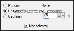 Selections> Select All ... Selections> Modify> Contract by 3 ... Selections> Invert Flood Fill the Selection with your Foreground color Adjust> Add/Remove Noise> Add Noise ... same settings as earlier Selections> Select All ... Selections> Modify> Contract by 1 ... Selections> Invert Layers> New Raster Layer Flood Fill the Selection with your Background color ... Selections> Select None Layers> Merge> Merge Down
