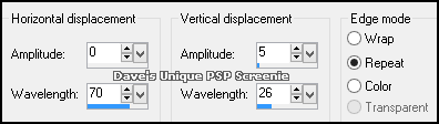 Selections> Select None Effects> Distortion Effects> Wave ... with the following settings