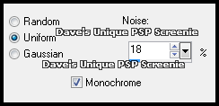 Layers> Merge> Merge Down Rename this layer TN and Duplicate it twice (for a total of 3) Activate the TN layer again ... Effects> Eye Candy 6: Textures> Texture Noise ... with the following settings Click on the "Settings" tab and then on the "Settings Tour (fixed scaling) " folder then click on "Overlay: Transparent Haze " so it is highlighted blue Click on the "Basic" tab then on the "Random Seed" button once ... click OK to apply the effect