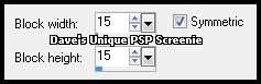 Open a New Image 600x250 ... Flood Fill with your Gradient Effects> Distortion Effects> Pixelate ... with the following settings