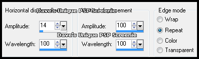 Flood Fill with your Foreground color ... Selections> Select None Effects> Distortion Effects> Wave ... with the following settings